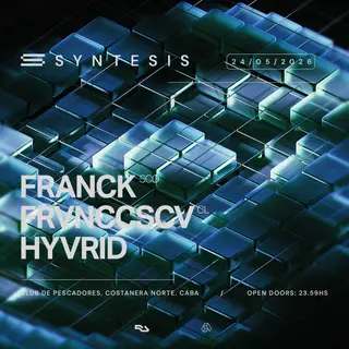 SYNTESIS: Franck - FRVNCCSCV - HYVRID takes place at Club de Pescadores Buenos Aires in Buenos Aires, Argentina on May 24, 2026. Featuring Franck, FRVNCCSCV. Trance and Techno sounds all night.