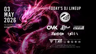 T2 SUNDAY takes place at T2 Shinjuku in Tokyo, Japan on May 3, 2026. Pop and Club sounds all night.