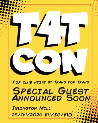 T4T Con takes place at Islington Mill in Manchester, United Kingdom on April 25, 2026. Pop and Club sounds all night.