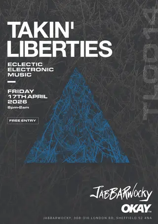 Joi La Frique and Chris Jackson headline TAKIN'LIBERTIES TL0014 at Jabbarwocky Sheffield, Sheffield, United Kingdom on April 17, 2026. Featuring Joi La Frique, Chris Jackson. Expect Techno and Electronica throughout the night.