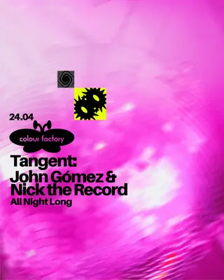 Tangent: John Gómez & Nick The Record All Night Long takes place at Colour Factory in London, United Kingdom on April 24, 2026. Featuring John Gómez, Nick The Record. House and Disco sounds all night.