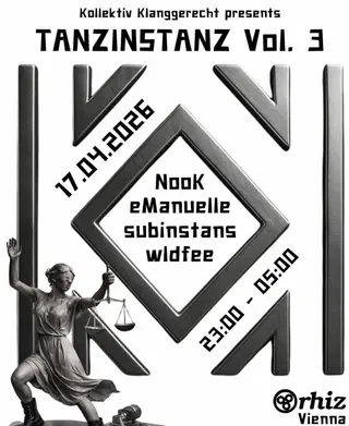 TANZINSTANZ Vol. 3 on April 17, 2026 at Rhiz, Vienna features electronic music performances DJ sets.