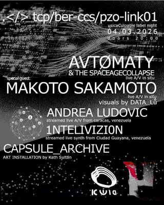 tcp-ber-ccs/pzo-link01 on March 4, 2026 at TBA - Kwia, Berlin features electronic music performances experimental DJ sets.