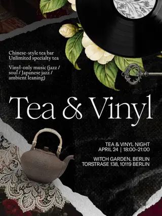 Tea & Vinyl at Witch Garden takes place at TBA - Witch Garden (Torstraße 138, 10119 Berlin) in Berlin, Germany on April 24, 2026. Featuring End80s. Funk / Soul and Jazz sounds all night.