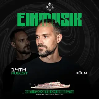Techno at TBA - Am Leystapel, Köln: Techno Dampfer Köln with Einmusik in Cologne, Germany on August 14, 2026. Featuring Einmusik. Pure techno sounds.
