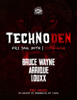 Techno Den at The House in New York, United States on January 30, 2026. Techno and Minimal Techno sounds all night.