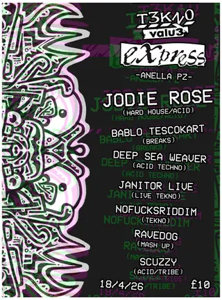 TEKNO VALUE: EXPRESS AT ANELLA on April 18, 2026 at Anella Penzance, West + Wales features electronic music performances DJ sets.