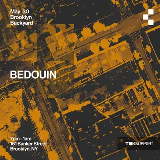 Teksupport: Bedouin (Saturday) takes place at BK Backyard in New York, United States on May 30, 2026. Featuring Bedouin. Tech House and Deep House sounds all night.