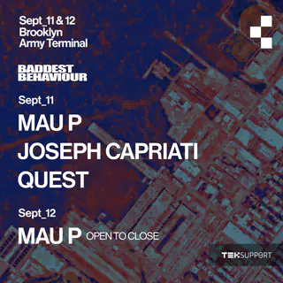 Teksupport: Mau P (Saturday) SOLD OUT takes place at Brooklyn Army Terminal in New York, United States on September 12, 2026. Featuring Mau P. House and Tech House sounds all night.