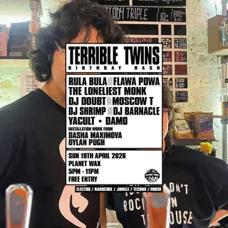 Terrible Twin's Birthday Bash takes place at Planet Wax in London, United Kingdom on April 19, 2026. Featuring DJ Doubt, Moscow T, DAMO. Hardcore and Jungle sounds all night.