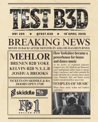 TEST B3D #001 - presents Mehlor on April 18, 2026 at TBA - No1 Cellar Bar (Regent Hotel - DN1 2DS), North features Mehlor performing house DJ sets.