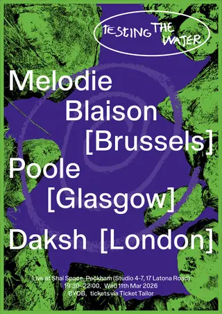 Testing the Water presents: Melodie Blaison (live), Poole (live), Daksh (dj) takes place at Shai Space in London, United Kingdom on March 11, 2026. Featuring Poole (1), Daksh. Ambient and Experimental sounds all night.