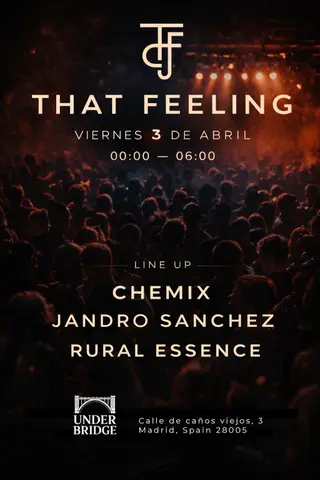 Set at Under Bridge Madrid, That Feeling x Under Bridge 2026 brings together artists and fans in Madrid on Friday, April 3, 2026. This event brings together artists and fans who share a passion for dance music culture and electronic sounds. This event represents the best of the local and international dance music community, hosted in a professional club setting. It has established itself as a must-attend gathering for those seeking authentic electronic music in Madrid. Designed for a discerning audience, the production features top-tier sound systems and an inclusive atmosphere. The production is designed to showcase the depth and diversity of contemporary electronic music.