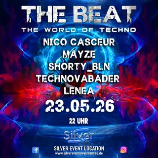 The Beat - World of Techno - Party takes place at Silver Event Location in Berlin, Germany on May 23, 2026. Featuring TechNovaBader. Techno and Electro sounds all night.