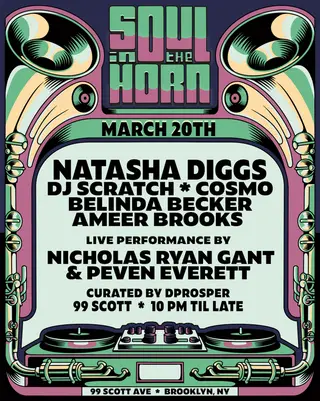 The Best Dance Floor In NYC... Soul In The Horn IS BACK takes place at 99 Scott Ave in New York, United States on March 20, 2026. Featuring Natasha Diggs, Peven Everett, Cosmo (NY), Ameer Brooks. House and Funk / Soul sounds all night.