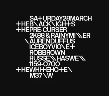 THE BLACK LIGHTS: THE PRE-CURSER 2026 takes place at the renowned The White Hotel in Manchester, United Kingdom on Saturday, March 28, 2026, featuring 2K88, Rainy Miller, Iceboy Violet and 3 more artists. This event brings together artists and fans who share a passion for dance music culture and Techno, Club sounds.
