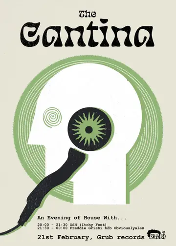 The Cantina takes place at Grub Records in Sheffield, Unknown on Saturday, February 21, 2026. Featuring Freddie Grisbi. House, Balearic.