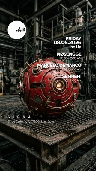 The Circle Underground Techno on May 8, 2026 at Sigma, Ibiza features Marcelo Demarco, SEMREH and MØSENGGE performing techno DJ sets.