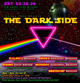 The Dark Side takes place at TBA - Speedway VFW Post #2839 3368 Wilcox St., Indianapolis, IN 46222 in Indiana, United States on March 28, 2026. Featuring Microdot, Destro187. Breakbeat and Electro sounds all night.