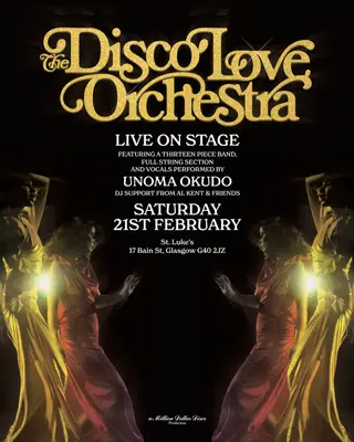 The Disco Love Orchestra Live takes place at Saint Luke's & The Winged Ox in London, United Kingdom on February 21, 2026. Featuring Al Kent. Disco sounds all night.