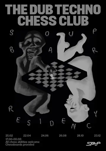 The Dub Techno Chess Club takes place at Soup in Paris, France on Wednesday, February 25, 2026. Featuring MEMP3, AdomasLP, Tommy Cross. Dub Techno.