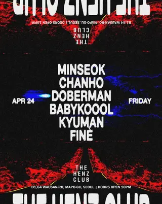 THE HENZ CLUB on April 24, 2026 at The Henz Club, Seoul features DOBERMAN and BABYKOOOL performing DJ sets.