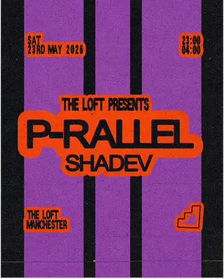 The Loft: p-rallel (extended) on May 23, 2026 at The Loft, Manchester features p-rallel and SHADEV performing DJ sets.