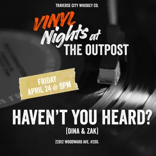 The Outpost: Haven't You Heard? (Dina & Zak) on April 24, 2026 at Traverse City Whiskey Co. Outpost, Detroit features electronic music performances funk / soul DJ sets.