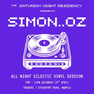 The Saturday Night Residency takes place at Traders in Manchester, United Kingdom on April 25, 2026. Balearic and Electronica sounds all night.