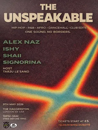 The Unspeakable takes place at The Haggerston in London, United Kingdom on May 9, 2026. Hip-Hop and R&B sounds all night.