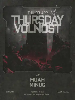 Thursday Volnost takes place at Volnost in Seoul, South Korea on April 30, 2026. Featuring Muah, Minuc. House and Minimal sounds all night.