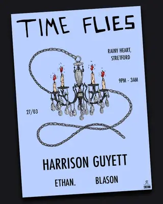 Time Flies with harrison guyett takes place at Rainy Heart in Manchester, United Kingdom on March 27, 2026. Featuring harrison guyett, Ethan., Blason. Downtempo and Electronica sounds all night.