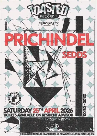 Toasted Records presents: Prichindel takes place at The Lubber Fiend in Newcastle, United Kingdom on April 25, 2026. Featuring Prichindel, Sedds. House and Minimal sounds all night.