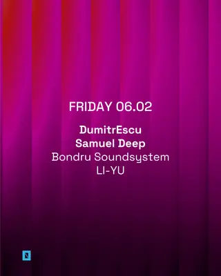 TOFFLER presents DumitrEscu, Samuel Deep takes place at Toffler in Rotterdam, Netherlands on February 6, 2026. Featuring DumitrEscu, Samuel Deep, LI-YU. House and Deep House sounds all night.