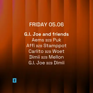 Toffler presents G.I. Joe and friends takes place at Toffler in Rotterdam, Netherlands, on June 5, 2026. The event features AEMS, an artist known for his contributions to the house and tech house genres. AEMS has gained recognition for his distinct sound and energetic performances, making him a notable figure within the electronic music scene. The lineup is expected to showcase a blend of house and tech house, aligning with G.I. Joe's established style.