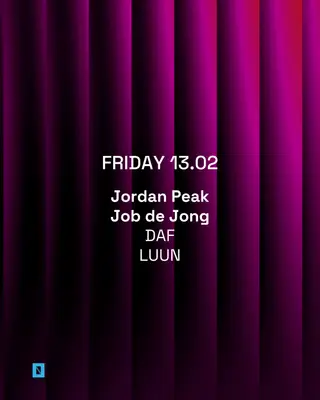TOFFLER presents Jordan Peak, Job de Jong takes place at Toffler in Rotterdam, Netherlands on February 13, 2026. Featuring Jordan Peak, Job de Jong, DAF, Luun. House and Tech House sounds all night.