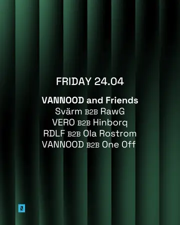 Toffler presents VANNOOD and Friends takes place at Toffler in Rotterdam, Netherlands on Friday, April 24, 2026. Techno, Tech House.