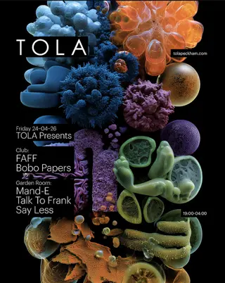 Tola presents FAFF takes place at Tola in London, United Kingdom on April 24, 2026. Featuring FAFF, DJ Say Less. Techno and House sounds all night.