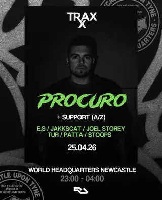 TRAXX PRESENTS: PROCURO takes place at World Headquarters in Newcastle on April 25, 2026. House, Tech House.