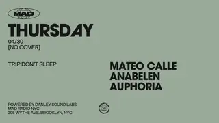 Trip Don't Sleep - Anabelen / Auphoria / Matteo Calle takes place at MAD Radio NYC in New York City, United States on April 30, 2026. Featuring Auphoria. Minimal sounds all night.