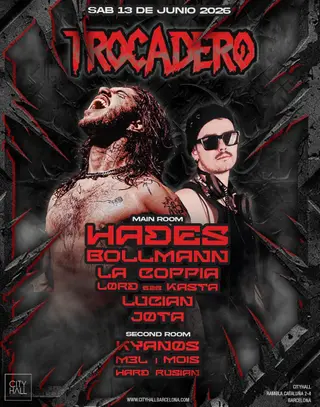 Trocadero in City Hall pres: Hades takes place at City Hall in Barcelona, Spain on June 13, 2026. Featuring Hades, Bollmann, La Coppia, Lucian (UK) and 2 more. Techno and Hardcore sounds all night.