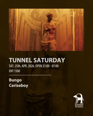 TUNNEL SATURDAY takes place at Aoyama Tunnel in Tokyo, Japan on April 25, 2026. Featuring bungo. Techno and House sounds all night.