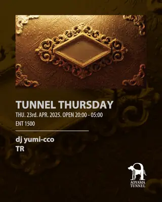 TUNNEL THURSDAY takes place at Aoyama Tunnel in Tokyo, Japan on April 23, 2026. Featuring dj yumi-cco, TR (8). Techno and House sounds all night.