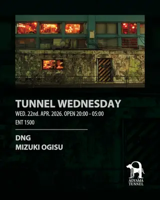 TUNNEL WEDNESDAY takes place at Aoyama Tunnel in Tokyo, Japan on April 22, 2026. Featuring DNG (1), MIZUKI OGISU. Techno and House sounds all night.