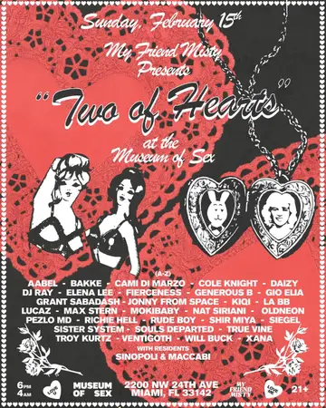 Two of Hearts takes place at TBA in Detroit, United States on Sunday, February 15, 2026. Featuring Bakke, Cole Knight, Daizy, DJ Ray (2) and 14 more.