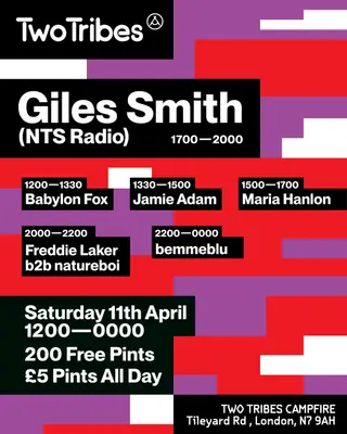 Two Tribes presents: Giles Smith at CAMPFIRE takes place at Campfire [Two Tribes] in London, United Kingdom on April 11, 2026. Featuring Giles Smith, Maria Hanlon, bemmeblu. House and Electronica sounds all night.