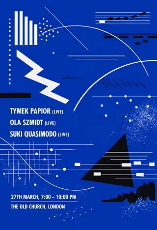 Tymek Papior, Ola Szmidt, Suki Quasimodo takes place at The Old Church in London, United Kingdom on March 27, 2026. Featuring Tymek Papior, Ola Szmidt, Suki Quasimodo. Experimental and Electronica sounds all night.