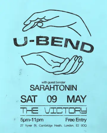 U-BEND takes place at The Victory in London, United Kingdom on Saturday, May 9, 2026. Featuring Sarahtonin, U-BEND. Balearic.