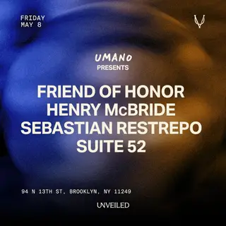 Umano 05/08 takes place at Unveiled in New York City on May 8, 2026. The event features Friend of Honor, an artist known for his work in the house genre. He is recognized for his melodic and emotive productions, often characterized by deep basslines and uplifting grooves.