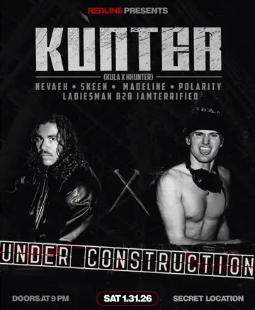 UNDER CONSTRUCTION SATURDAY takes place at TBA in Los Angeles, United States on Saturday, January 31, 2026. Featuring hhunter, Kula, Madeline (Chi), NEVAEH and 3 more. Techno, Hardcore.